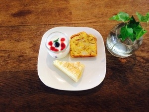9月2日(火)のケーキ 2014-09-02 (最終更新: 2022-01-16)お知らせ ・りんごのクランブルチーズケーキ ・巨峰のヨーグルトムース ・ジャーマンポテトのケークサレ 今日はお天気がいいですね。お散歩がてら、お近くにお越しの際は是非、ゆっくりしに来て下さい。